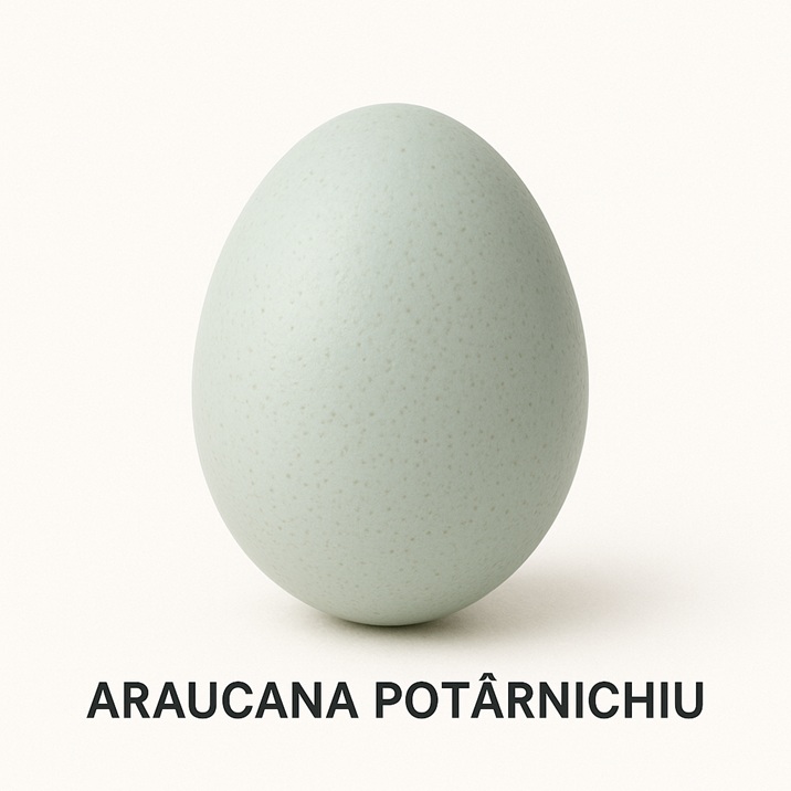 Ouă de incubat Araucana Potârnichiu – rasă sud-americană deosebită, originară din Chile, renumită pentru ouăle sale spectaculoase, de culoare albastru-verzui natural. Araucana este o pasăre de talie medie, activă, rezistentă și prietenoasă, care se adaptează ușor atât în gospodării, cât și în ferme mici.